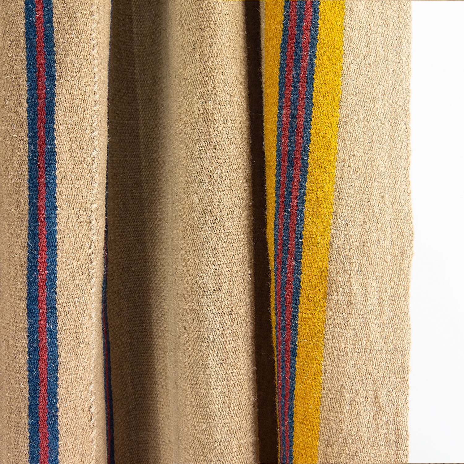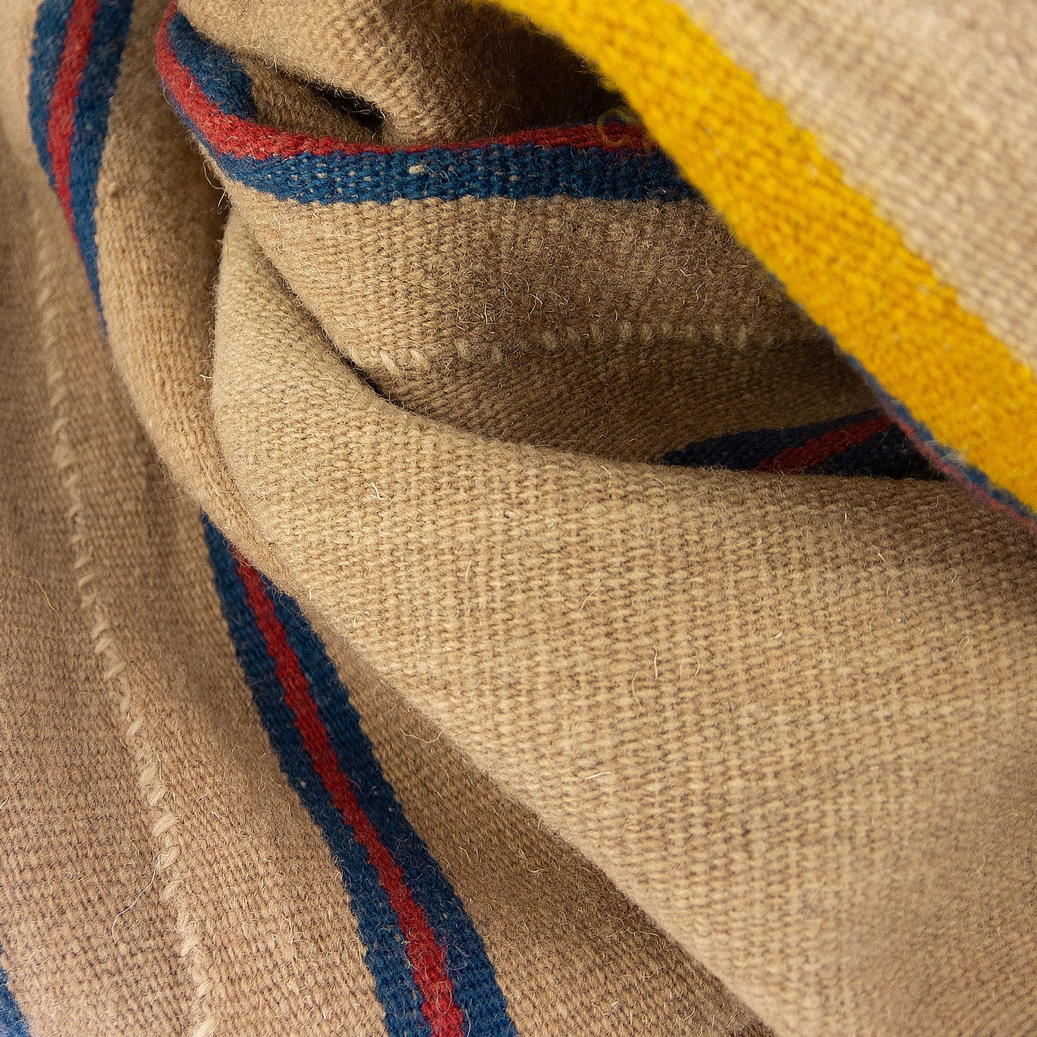 Poncho overcoat / Long handmade Sarape woven by hand on a backstrap loom. Dyeing: Natural cochineal, indigo, pericón and walnut shell dyes. Origin: San Cristobal de las Casas, Chiapas. Material: 100% Lambswool. Size: 94 x 116 cm. / 760g. Handmade in Mexico. Care: Hand wash cold. Do not use whitener.