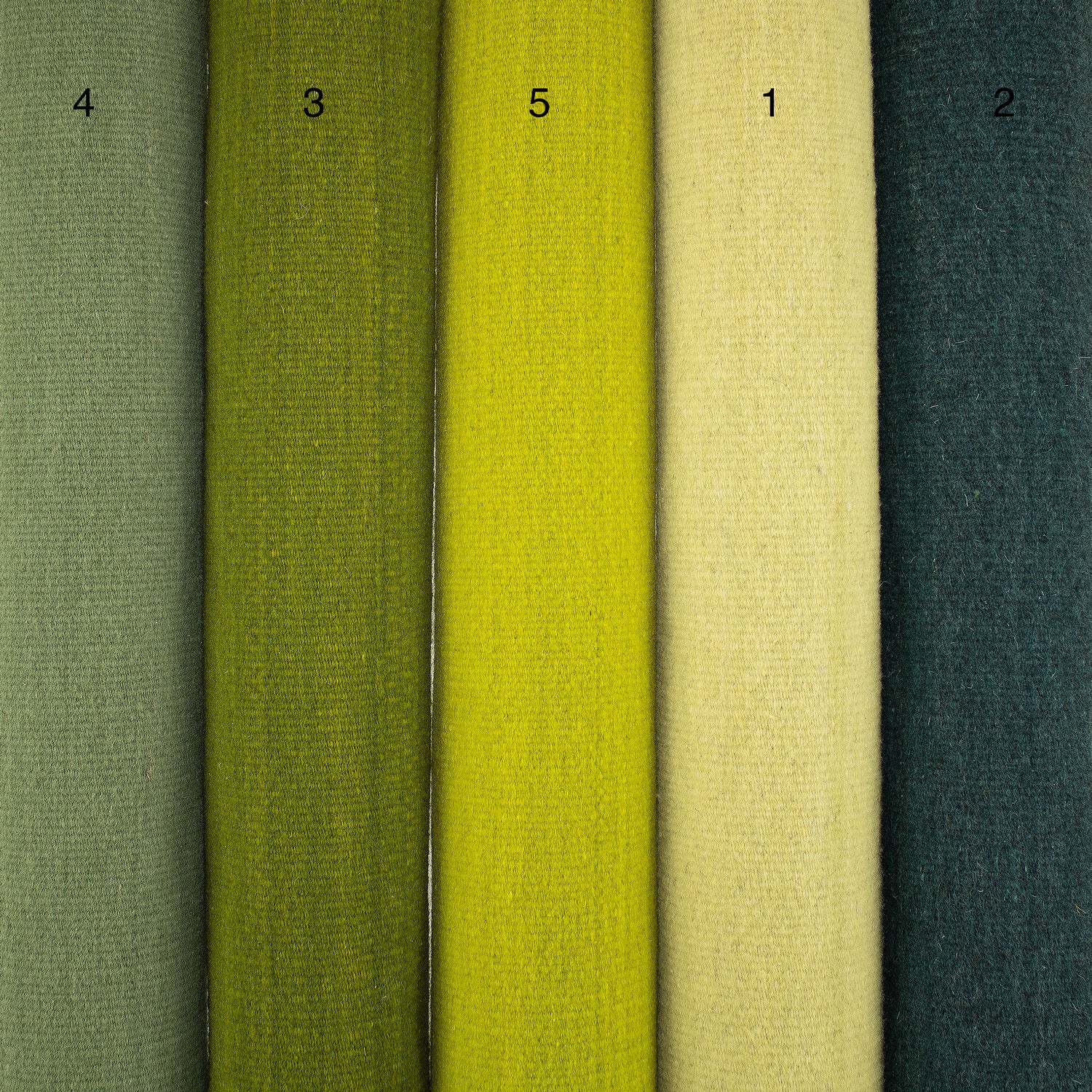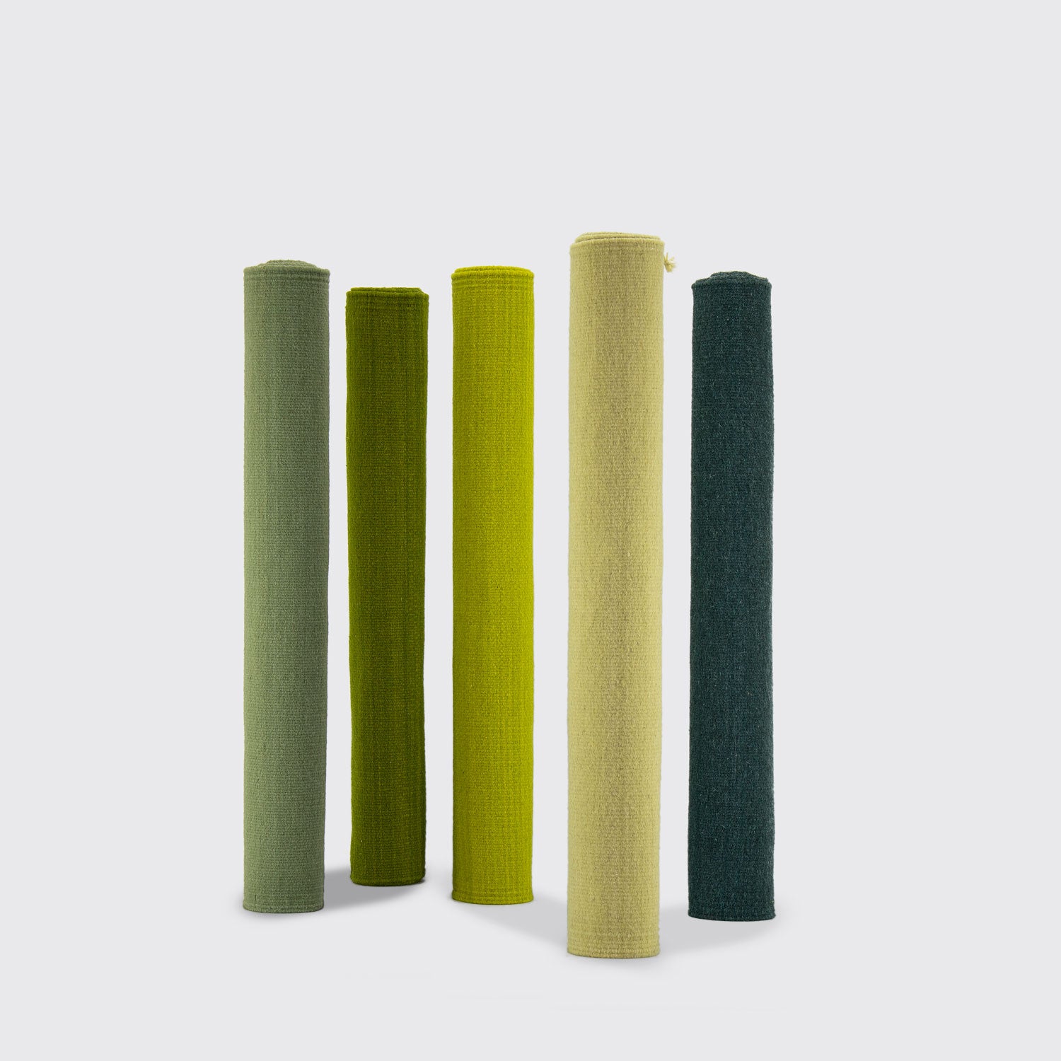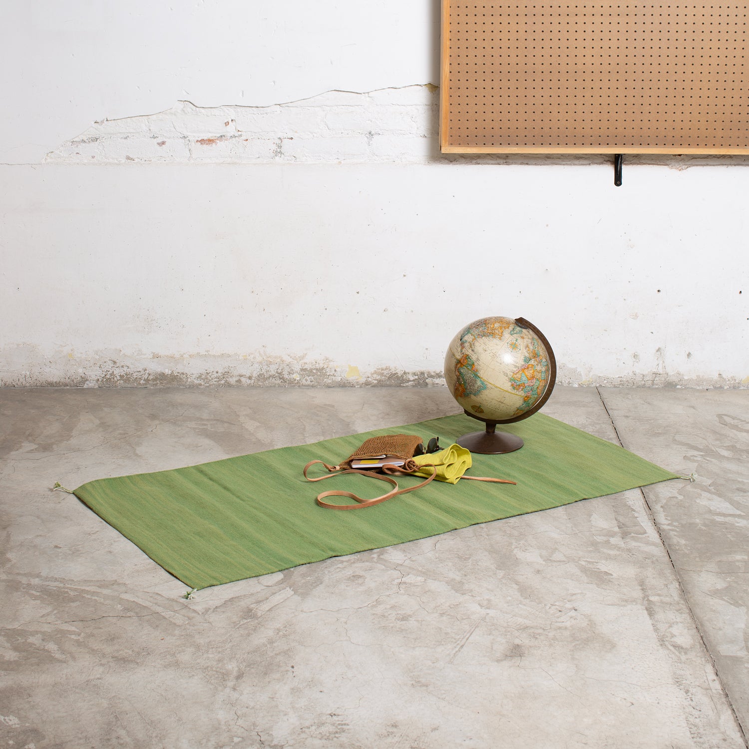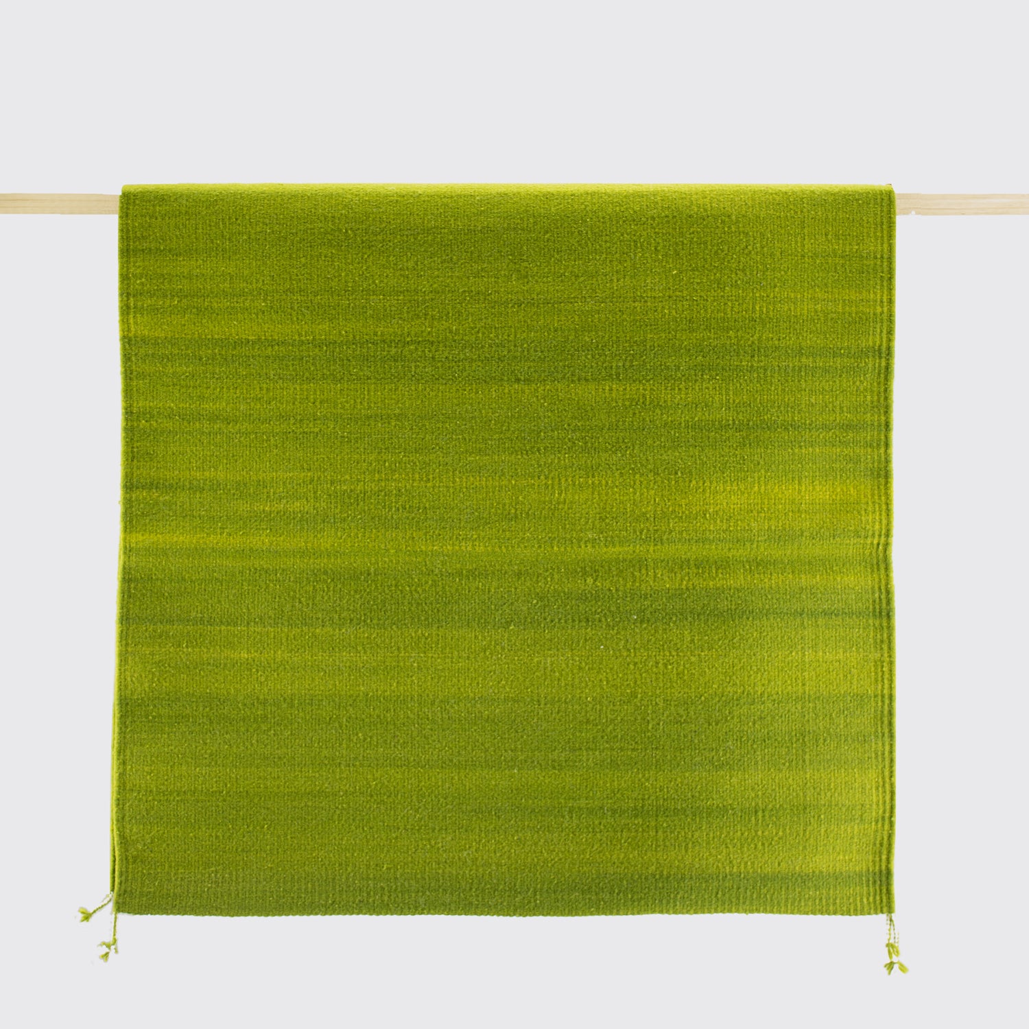 Hand-dyed rug and woven on a pedal loom. Range of 3 colors.