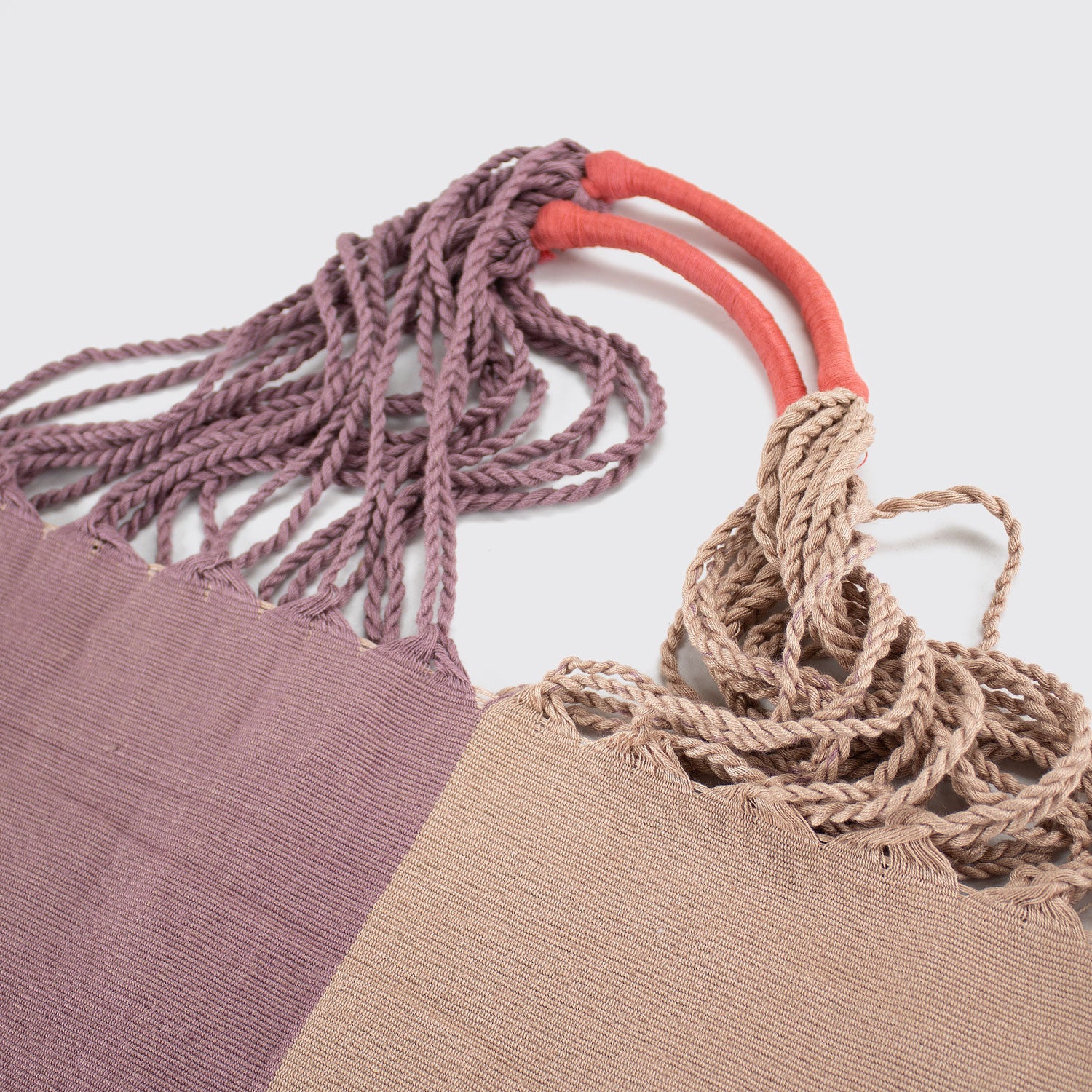 This handwoven bag, made using a waist loom, is the result of a bold experiment carried out by a skilled artisan from San Cristóbal de las Casas, Chiapas. He created this authentic and functional design by joining two pieces of mini hammocks and using the cords from the ends as handles.