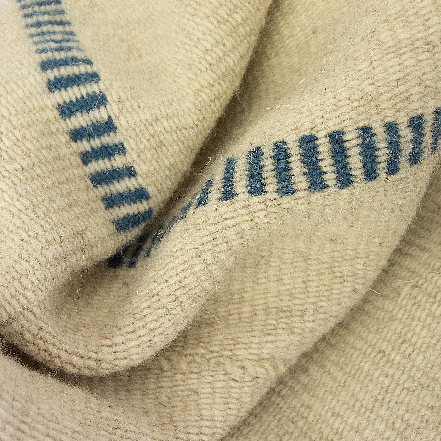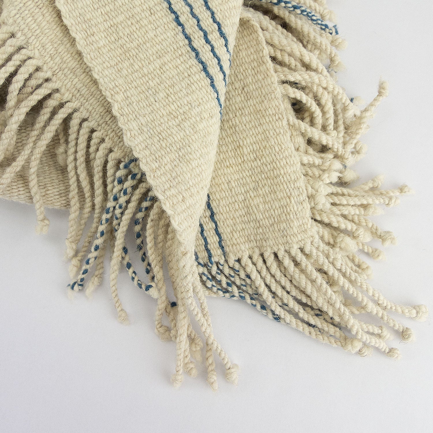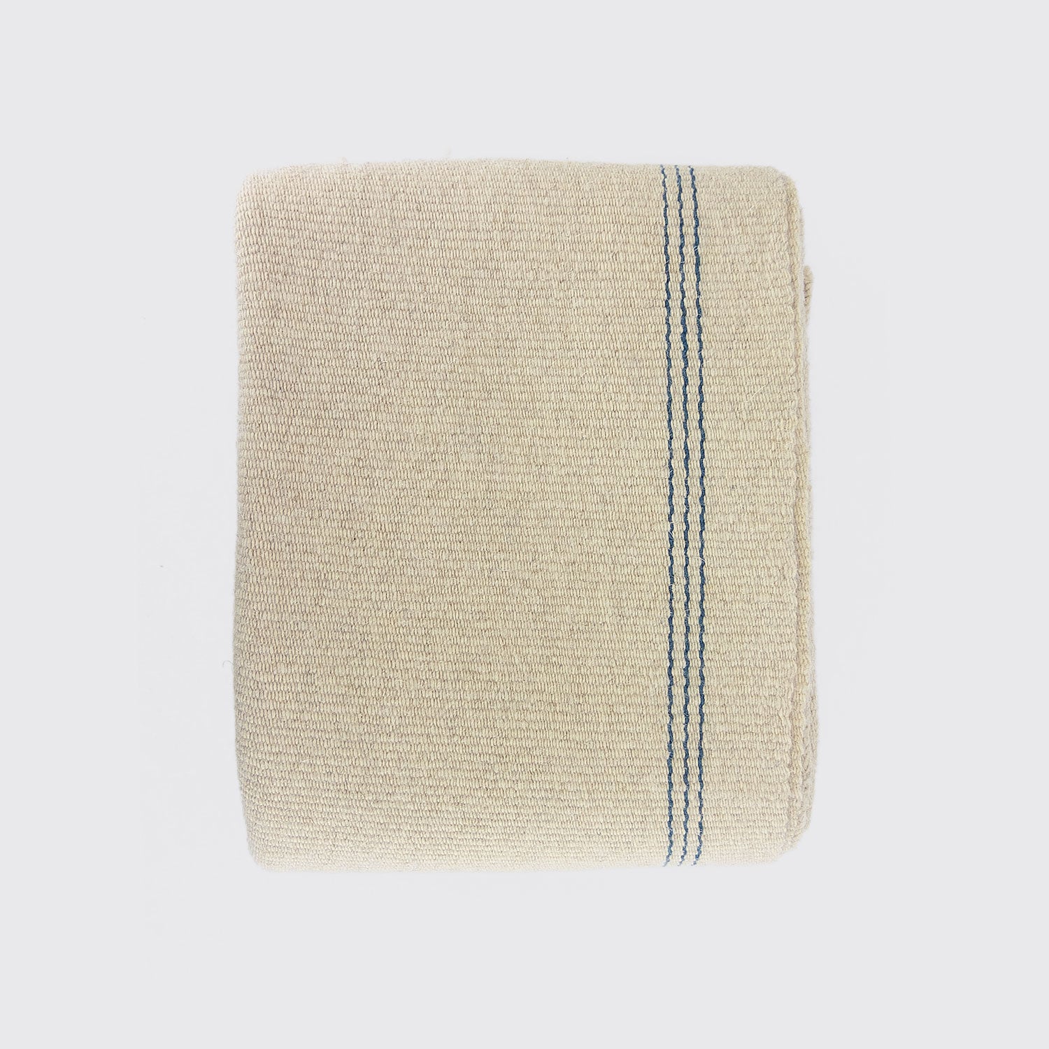 Pieza Singular. Cobija artesanal elaborado en telar de cintura por la artesana Petra Rivera Estrada, en Hueyapan, Morelos. Pieza única conformada por dos lienzos unidos que celebra las técnicas tradicionales y el talento de una artesana experta.