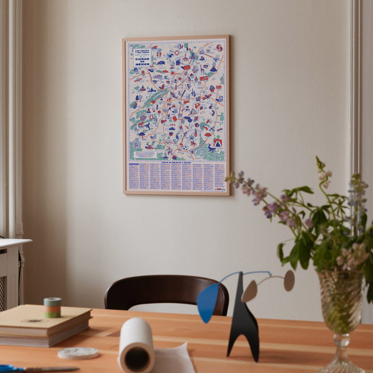 The streets and their themes | Illustrated map of Mexico City. The artist and designer Sophie Greenspan did a job as great as CDMX: based on her investigation of the themes that call the neighborhoods of the city, she made an amusing cartography that accounts for the enormous variety of themes that have been chosen for name the roads of the capital. Stockings: 90 x 60 cm. 6-ink silkscreen, 150 g Fabriano paper. Edition of 50 numbered copies signed by the author. Digital printed version available, Kronaline 180 g paper. Edited and printed in Mexico by Mixed Madia.