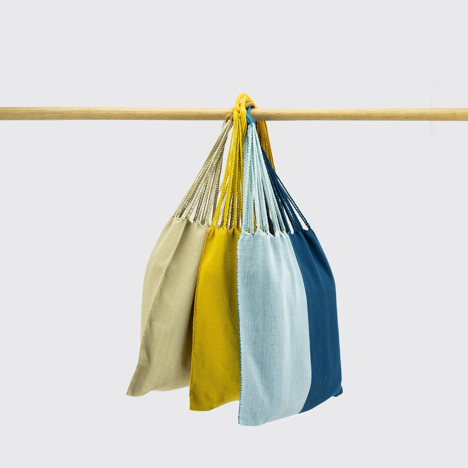 This handwoven bag, made using a waist loom, is the result of a bold experiment carried out by a skilled artisan from San Cristóbal de las Casas, Chiapas. He created this authentic and functional design by joining two pieces of mini hammocks and using the cords from the ends as handles.
