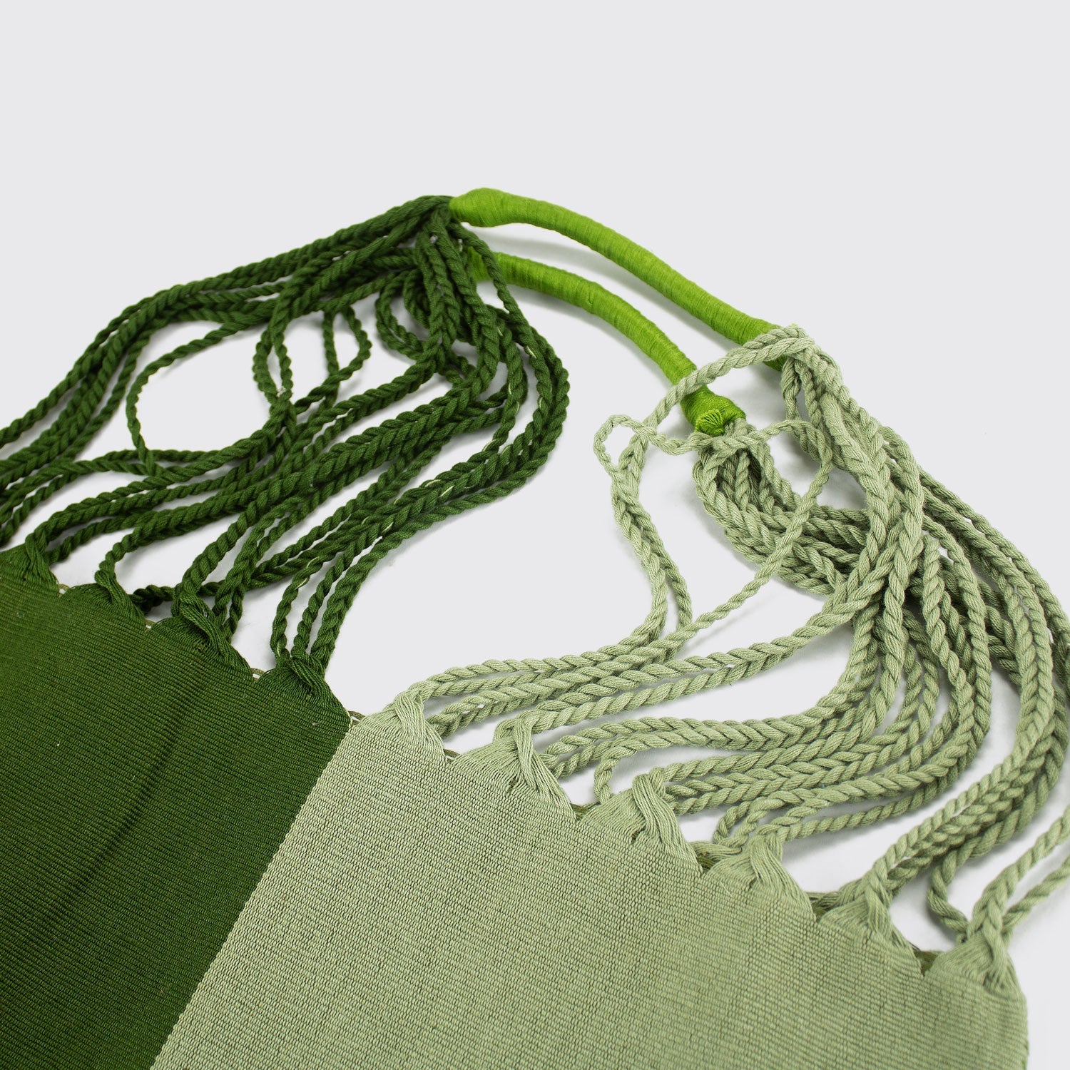 This handwoven bag, made using a waist loom, is the result of a bold experiment carried out by a skilled artisan from San Cristóbal de las Casas, Chiapas. He created this authentic and functional design by joining two pieces of mini hammocks and using the cords from the ends as handles.