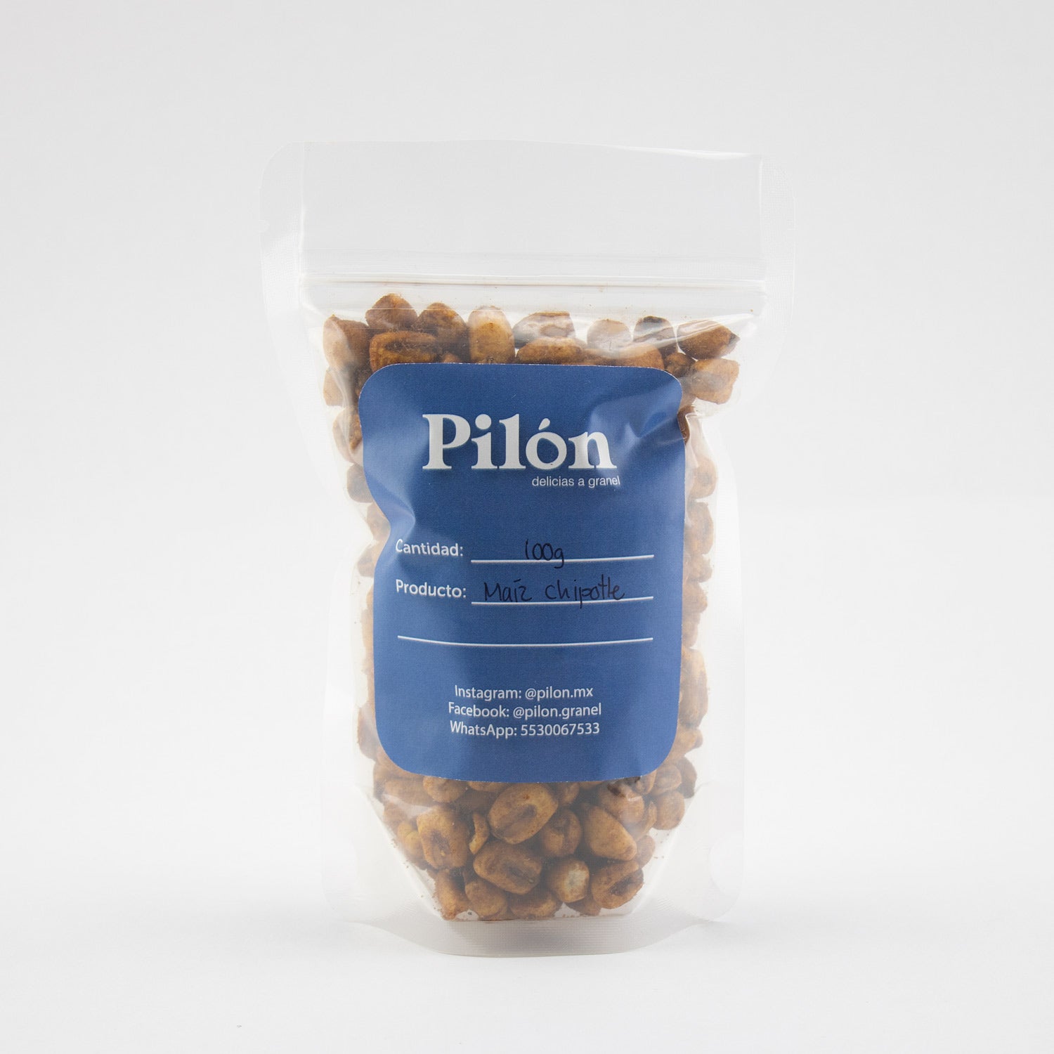 Maíz tostado espolvoreado con chile chipotle seco para llevar. Descubre un equilibrio de sabores perfecto para tus recetas favoritas. Dale sabor al desayuno, almuerzo o cena o snack con una pizca de chipotle de maíz. Llévalo a cualquier parte y encuentra tu momento. Contenido neto: 100 g. Hecho en México por Pilón