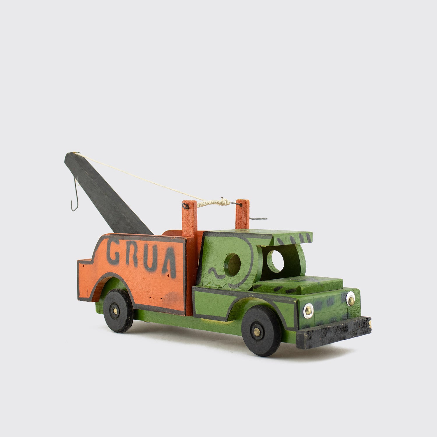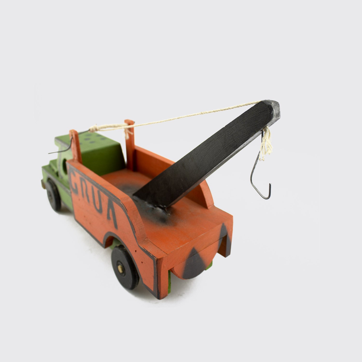 Objeto Singular: Grúa con gancho. En colores clásicos y gráficos con diseños atemporales y acabados auténticos de la artesanía mexicana, este juguete de madera está lleno de carácter y encanto. Su construcción clásica es el complemento perfecto para cualquier cuarto de niños o sala de estar.