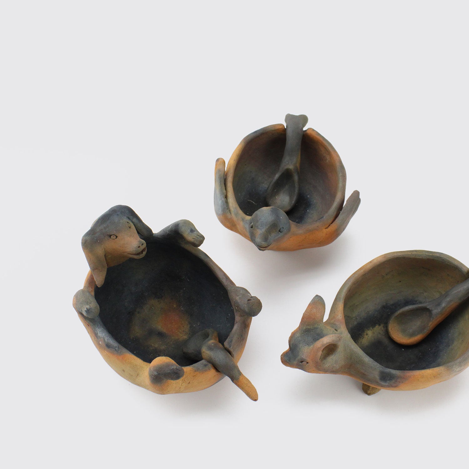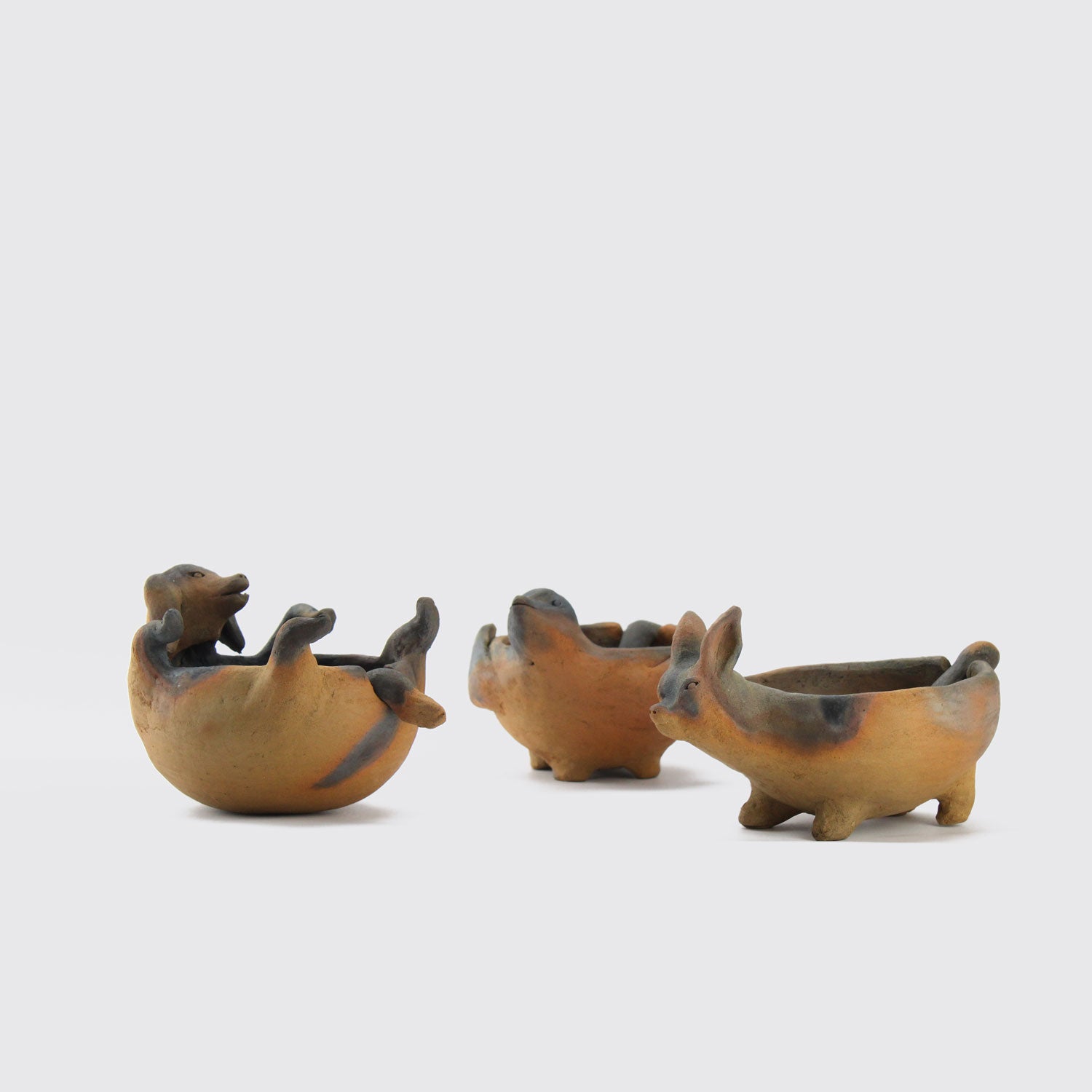 Estos encantadores objetos añaden un toque de naturaleza a la mesa. Los artesanos michoacanos han esculpido a mano y cocido en hoguera cada una de estas piezas en formas familiares de animales silvestres y de rancho. Estos salseros son funcionales y decorativos. Su belleza radica en los detalles cuidadosamente tallados. En conjunto, los objetos de barro rojo reflejan la riqueza cultural y artística de México, conectando el pasado con el presente y transmitiendo la pasión por la artesanía, la naturaleza mexicana y la vida del día a día.