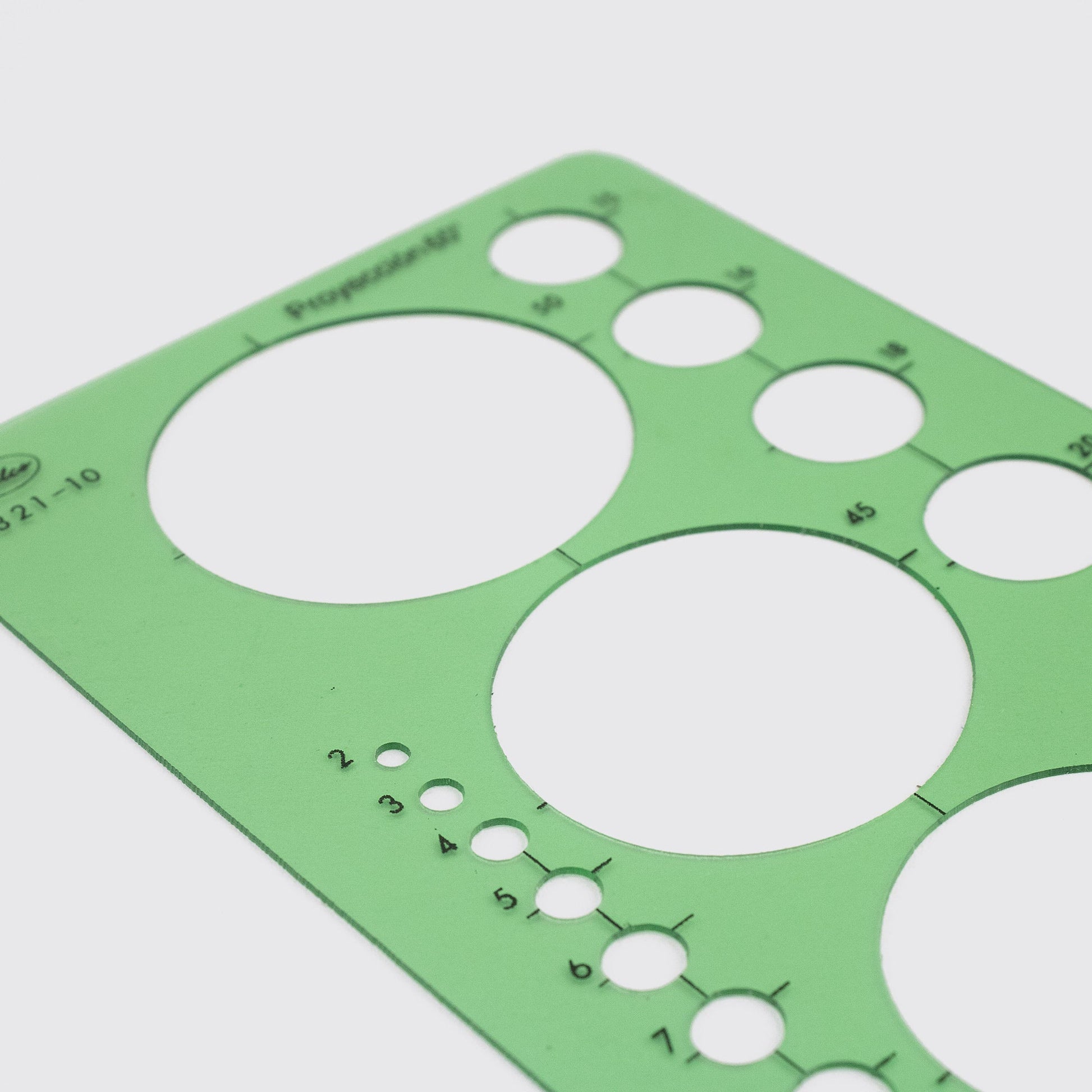 The oval stencil is made of clear acrylic and measures 20.5 x 10 cm, facilitating precise and comfortable drawing. This technical instrument, manufactured in Germany by Standardgraph circa 1980, is renowned for its quality and reliability in technical drawing and design applications. Its robustness and clarity allow for long-term and accurate use, making it an essential tool for professionals requiring highly precise oval shapes. Ideal for engineering, architecture, and graphic arts work.