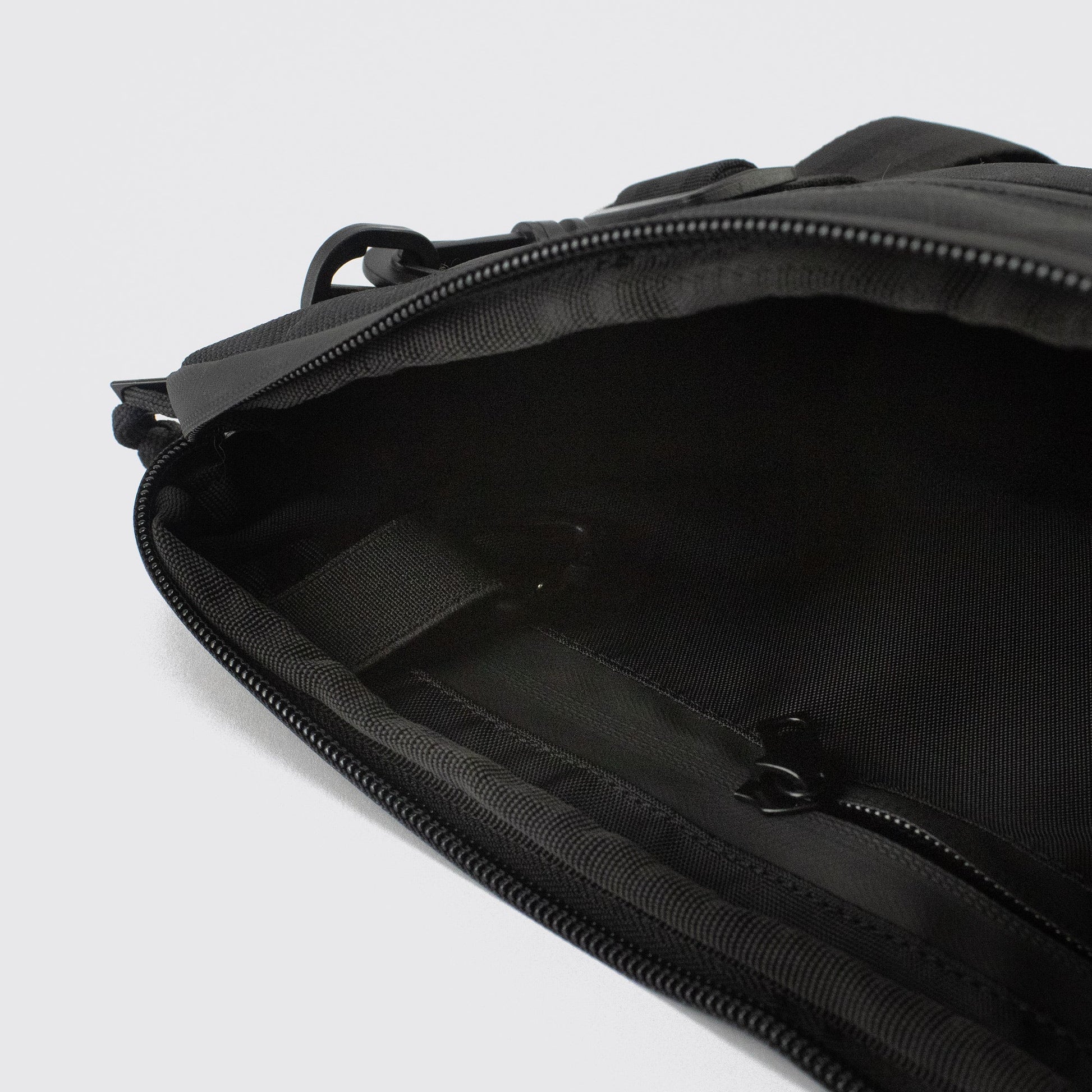 The front features a polyester mesh pocket that allows you to store items while still being able to see them at all times. The inside features a long, semi-hidden pocket with a water-repellent closure, as well as a carabiner for securing keys or other accessories. It includes an additional accessory that allows you to stabilize the bag when you need extra support during physical activity.